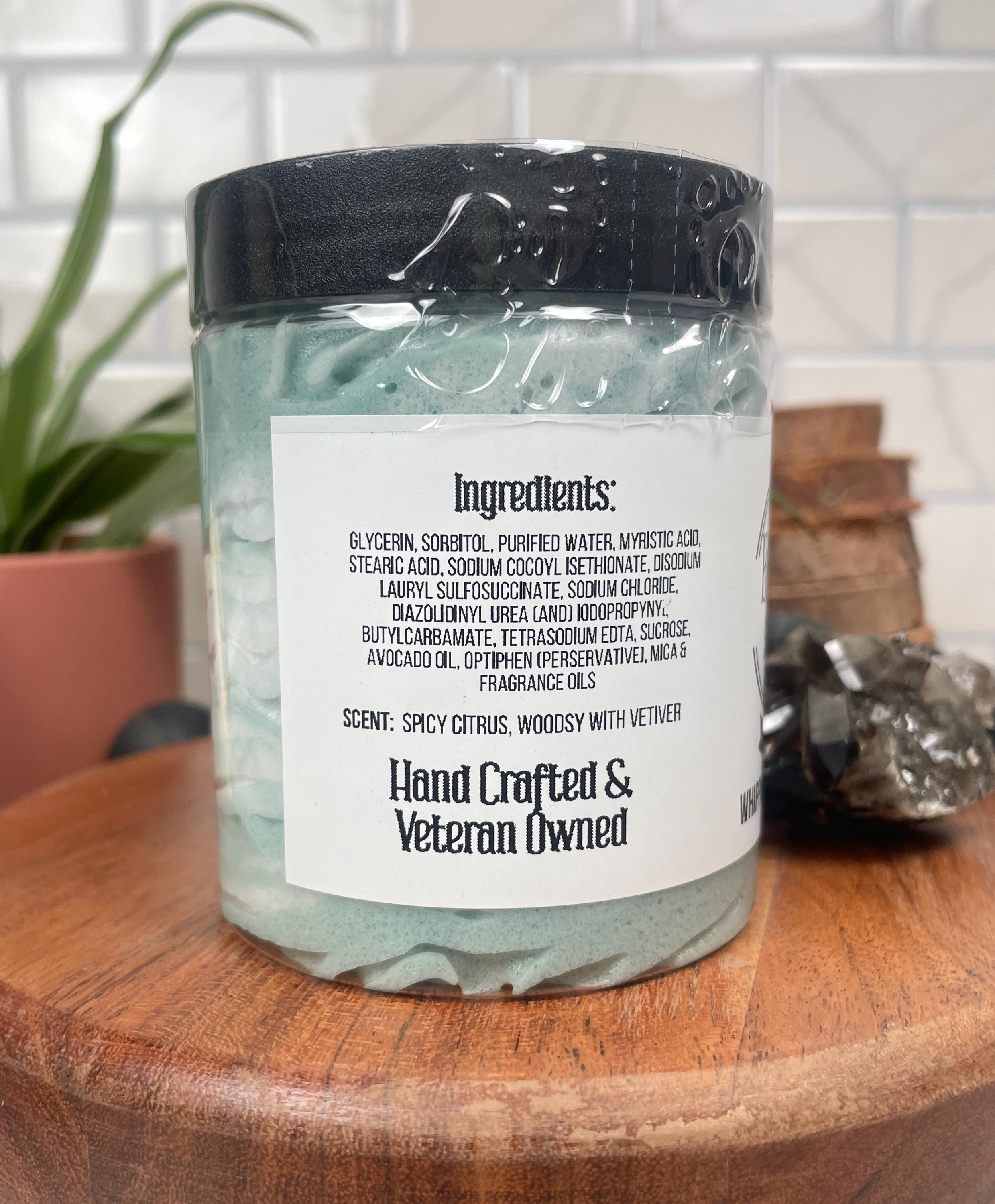 Ingredients: Glycerin, Sorbitol, Purified Water, Myristic Acid, Stearic Acid, Sodium Cocoyl Isethionate, Disodium Lauryl Sulfosuccinate, Sodium Chloride, Diazolidinyl Urea (and) Iodopropynyl Butylcarbamate, Tetrasodium EDTA, Sucrose (Sugar), Persea Gratissima (Avocado Oil), Optiphen (preservative), fragrance oil